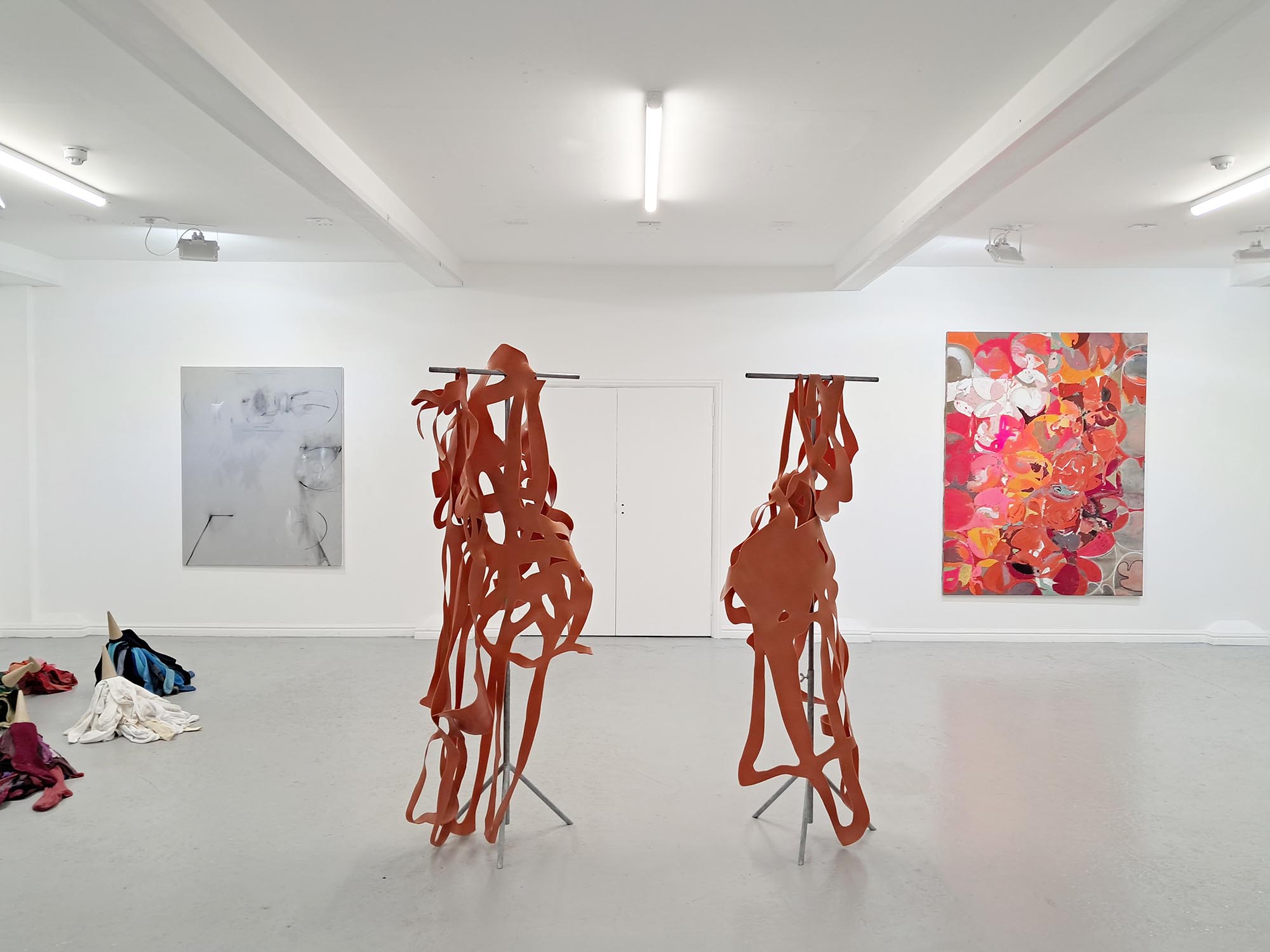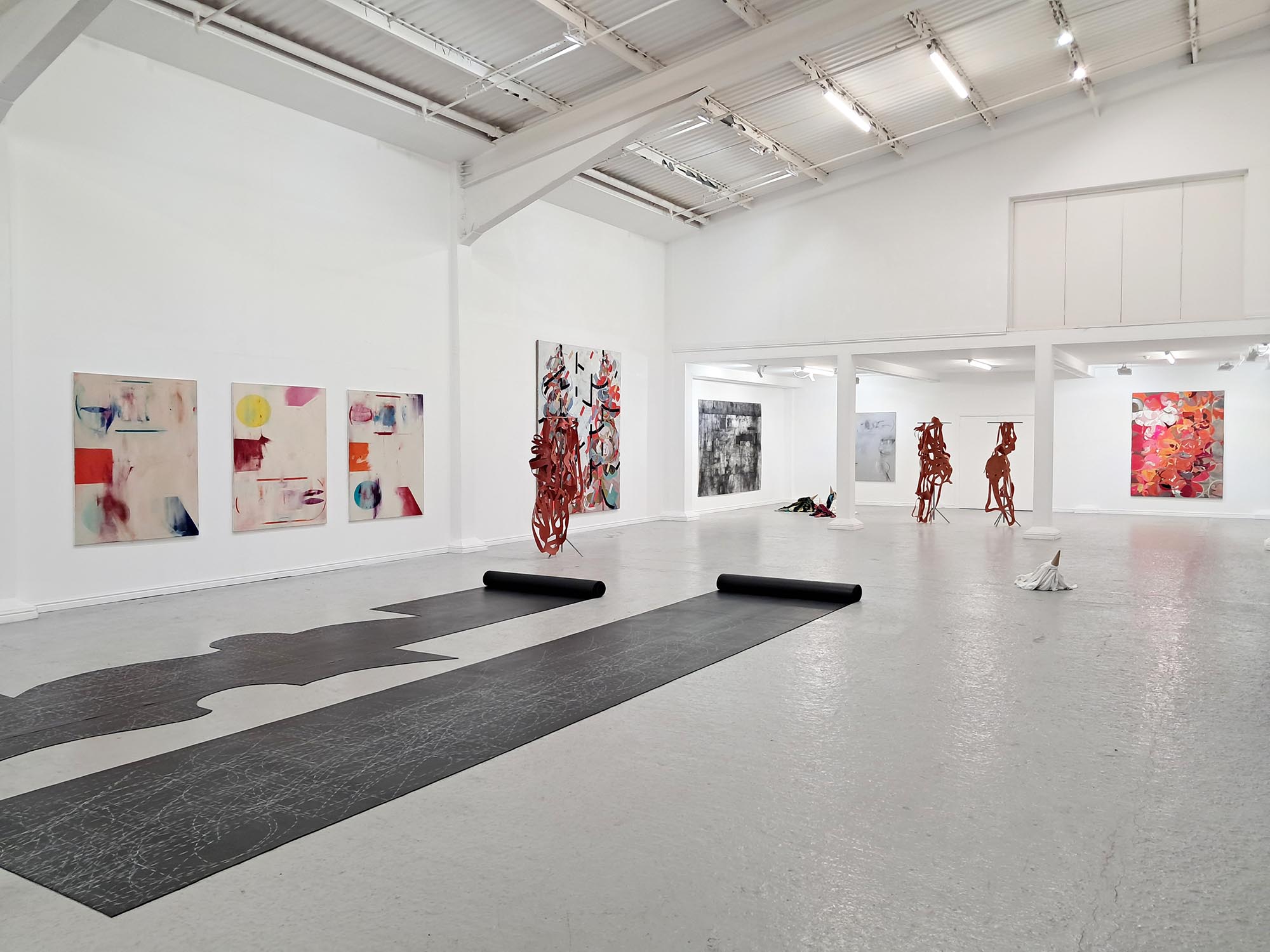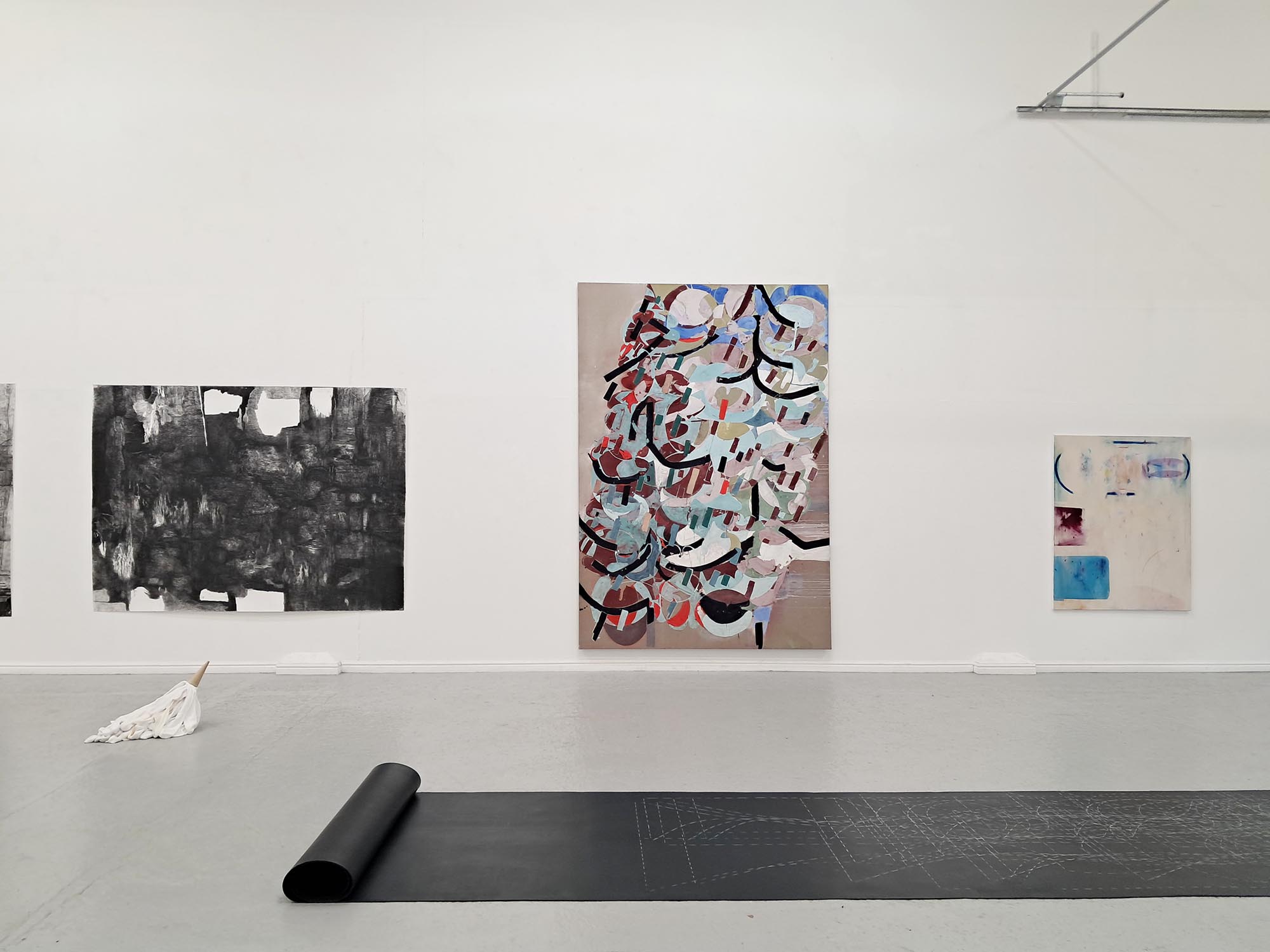 extract from The Unhinged Critic / Matthew Caley [ for A Plan for Living ] supposedly says The Un-hinged Critic resemblance and affirmation canot be uncoupled without a gentle carnage but never in the architect's model where perspective leaves merely an odour and bodies once posed vacate responsibility A Plan for Living is an exhibition of large-scale drawings, paintings, sculpture and installations. The show takes its name from a painting by Stephen Nicholas, now hanging in the studio home of artists Carina Diepens and A. van Campenhout in the Netherlands. This connection between old friends forms the starting point to a conversation about the process of making art. The project explores the tension between planning and making, between idea and realisation, between purpose and result. A plan sets an intention; it is an act of optimism and a gesture towards potential. It also knowingly encompasses the possibility of failure. A map, a scheme, a drawing – a plan - suggests an act that is open to new form and with this marks a beginning and an inherent capacity, a generosity of spirit. The artists search for the dynamic between the planned and the unexpected, the controlled and the uncontrolled, between the material and the immaterial. They are not only looking for the final image but want to probe the relevance of the creative process as a parallel for human connection, feeling and understanding. A Plan for Living acknowledges the physical space of making as well as the mental space that underlies it. As the world grows more polarized and undergoes rapid change, its social challenges inevitably enter the studio. These issues compel artists to take a stance—though the responses are rarely straightforward. Instead, they manifest in abstract ways within the work of the four artists.