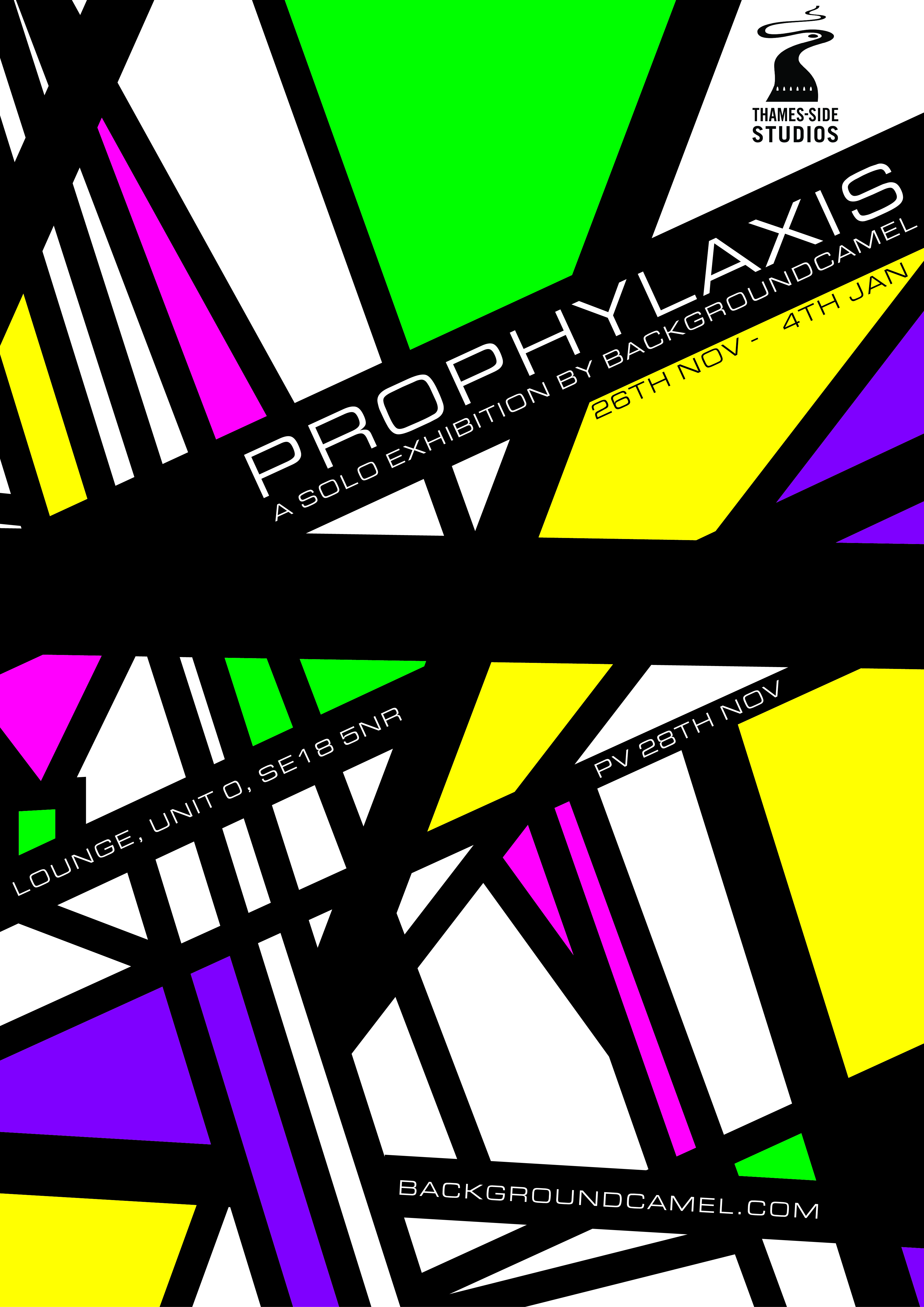 Prophylaxis is a collection of artworks by Backgroundcamel (Studio 4-047). They are based on location, maps, architecture, stained glass, and pop culture. Their existence is an attempt to enrich people's lives through joy and inspiration using bright colours, bold lines, geometric shapes, abstract imagery and abstract concepts.
