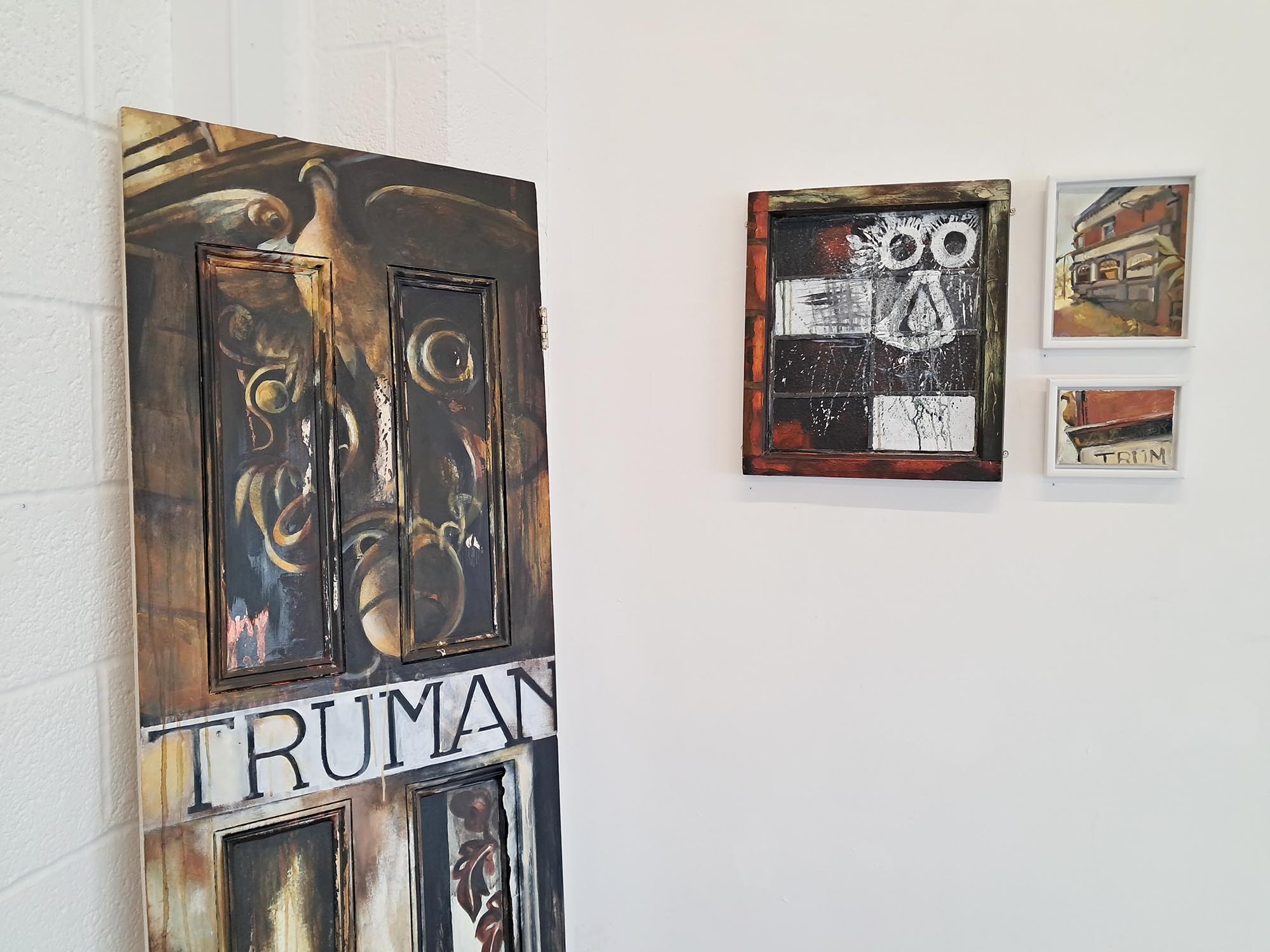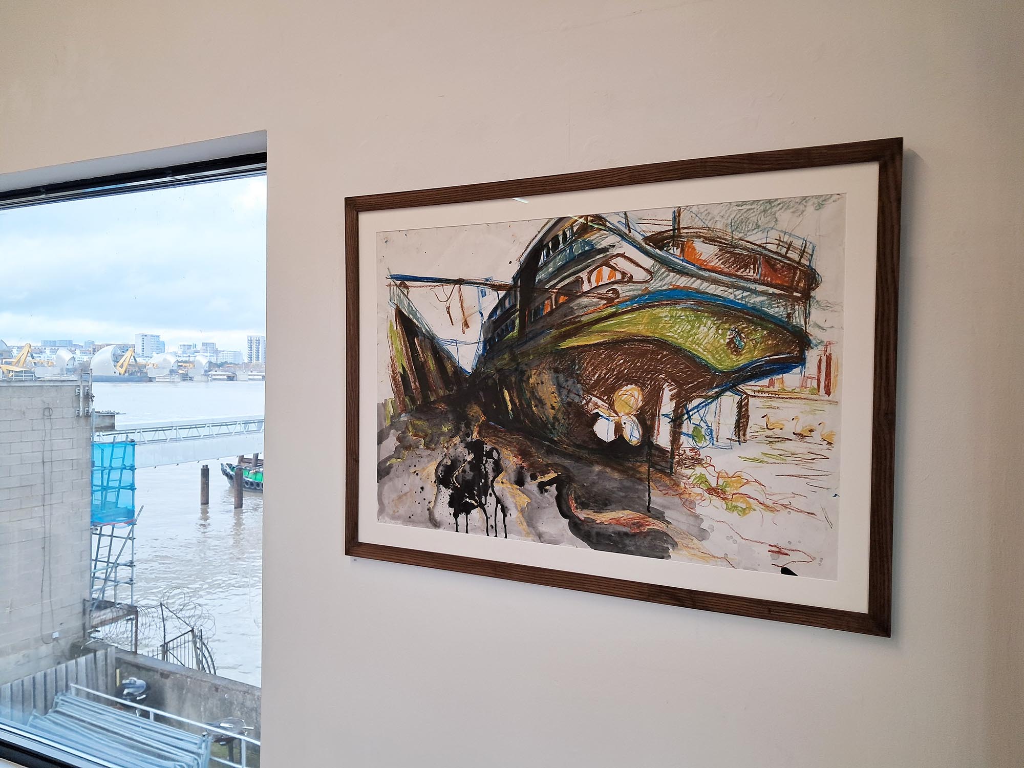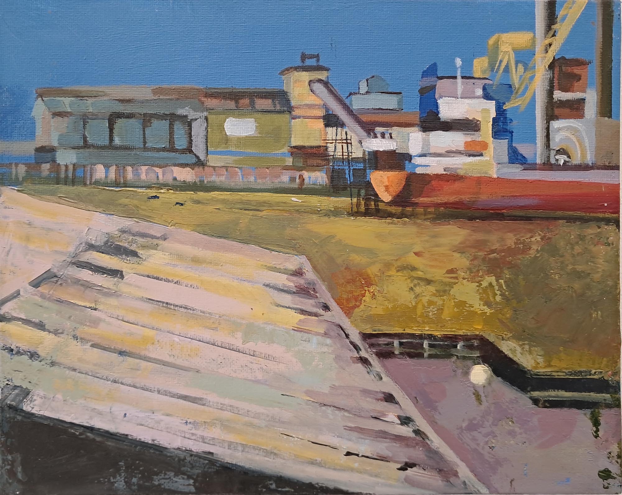 Scratch the surface…initiate an initial investigation to discover something concealed. In this exhibition, Gerri Grogan (7-206) presents work drawn over a period of time, exploring themes of the passing of time, history, nostalgia and making moves towards abstraction. Observing and researching the history of this part of industrial London, she has looked at how we attach sentiment and memory to the environments of our past and the idea that we often look back nostalgically but find the present lacking. Erosion and decay demonstrate how the passage of time impacts on the surface and material of those environments. The use of doors as art links directly to entering those different worlds and the idea of stepping into the artists’ mind. The Royal Iris ferry conveys a real sense of past glories eroding before our eyes, as do the once busy local pubs and workplaces which have been left to the ravages of time. The Tate and Lyle factory however is a still functioning reminder of the industrial heart of this part of London, and remains a constant landmark on the horizon, with moving elements reminding us of its purpose. This view has continued to inspire Gerri’s work, more recently towards a more abstract interpretation of the colour palette and ever- changing light quality reflected back from the river and the sky. About the artist: Gerri Grogan studied Fine Art at Wolverhampton University then later a MA at SOAS in Art and Architecture of South East Asia. She has been an art teacher both full and part time for over 30 years, only coming back to her own practice more fully in the last nine years. She also volunteers as a guide at Tate Modern. Her work has been very inspired by the history of her environment, whether that is urban London or the Buddhist stupas of India, but in particular the erosion and surface qualities of those environments and how they convey the passage of time has held a particular fascination. Gerri has participated in several group shows, including in Wolverhampton, Thames-Side Studios and Tate Modern staff shows, as well as a solo exhibition at the Brunel Museum café. She was also previously an artist in residence in Bangkok. For more details and information please get in touch with Gerri directly here and follow on Instagram @gerrigroganart Thames-Side Studios Lounge is located on the second floor of Unit 0 and open to all studio holders and by appointment. For non-studio holders please DM the artist to arrange an appointment.
