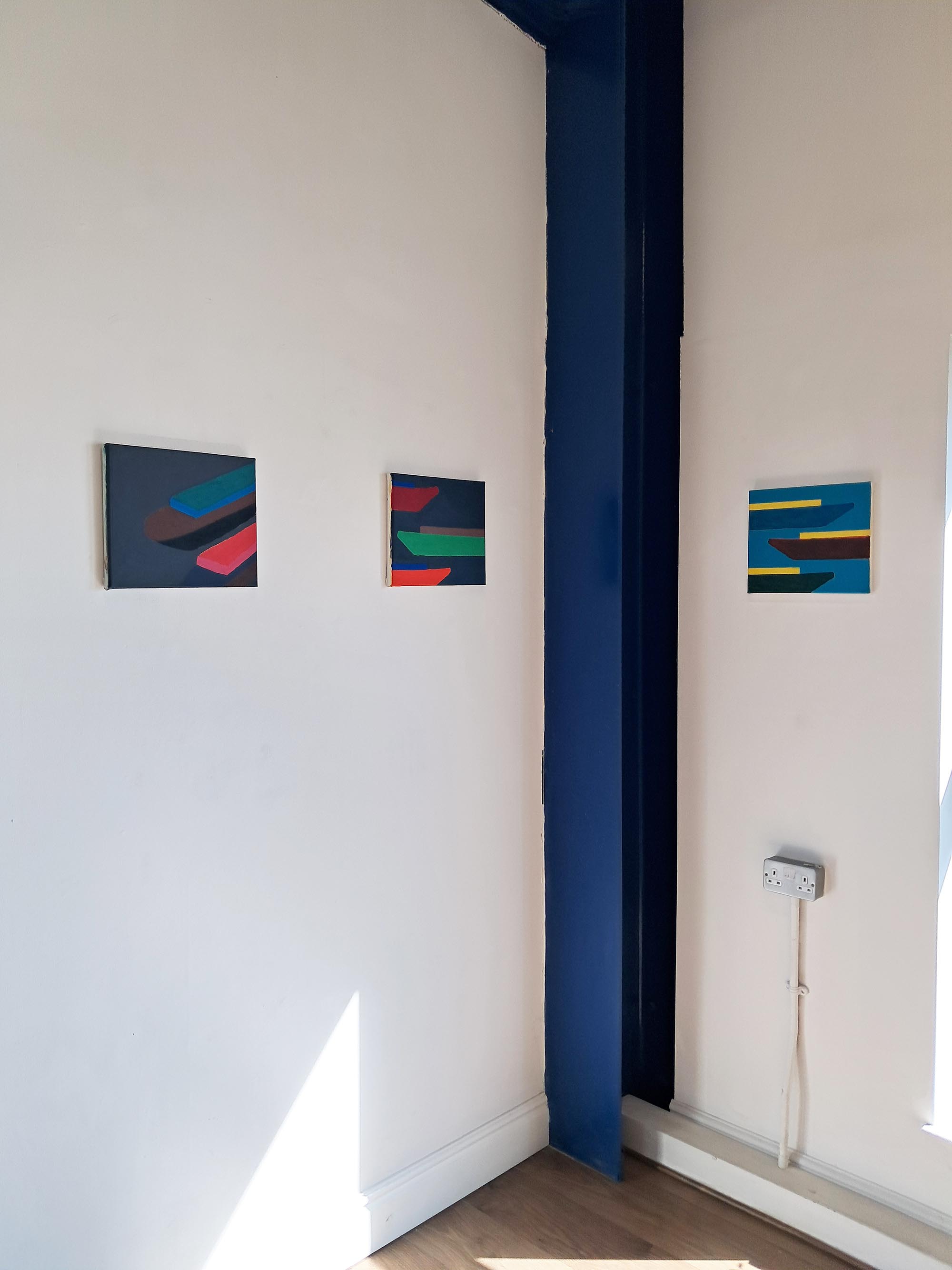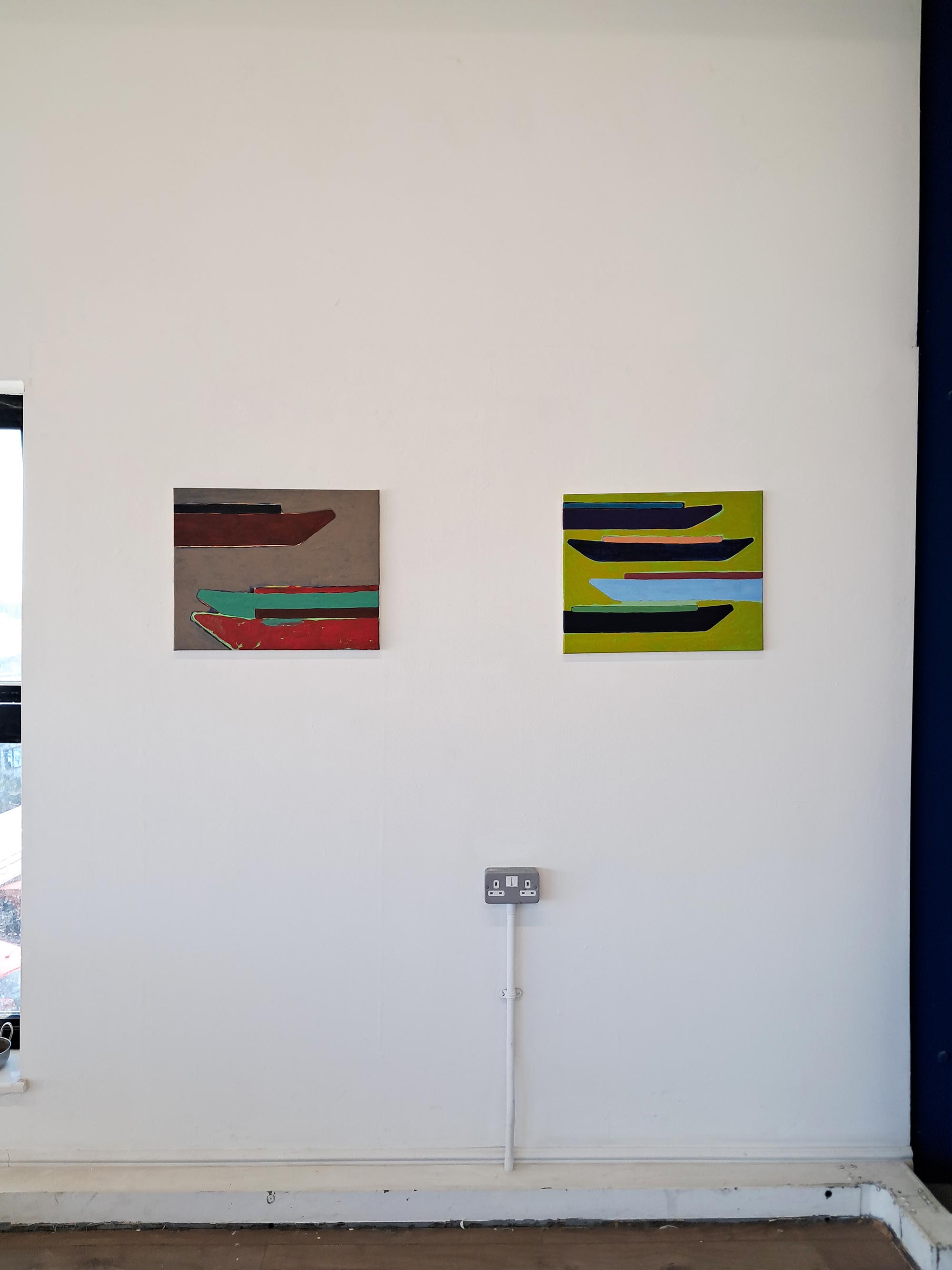 Ship to Shore is an exhibition of new paintings by Michael Bartel (Studio 5-113). The paintings in this show are a development from drawings made along the Thames path. The tugs and barges on the river, with their clean lines and colourful, weatherworn patina, have always interested and inspired me. The work in the show were all made in 2024-25 and whilst the shapes and forms are true to the original drawings, the colours were selected intuitively, with an emphasis on bright and crisp, and with more than a passing suggestion of playfulness. Michael Bartel, August 2025 About the artist: Michael Bartel (b. 1960 Plumstead) grew up in East Greenwich. Living close to the river the barges, boats, wharves, boat yards and muddy foreshore soon became his adventure playground. Throughout his life's employment, including that of a printer, delivery driver, motorcycle courier, carer and latterly since 2007 as gardener, Michael maintained his practice as a painter. He studied Foundation at Goldsmiths College, followed by BA Hons Humanities Art/ European Thought and Literature at Cambridge College of Arts and Technology. Michael has exhibited in group shows at Lewisham Arthouse and APT Gallery, and in 2025 at Thames-Side Studios Open Studios and exhibition. Ship to Shore is Michael Bartel's first solo exhibition. Thames-Side Studios Lounge is located on the second floor of Unit 0 and open to all studio holders and by appointment. For non-studio holders please email the artist M8rtel@outlook.com to arrange an appointment.
