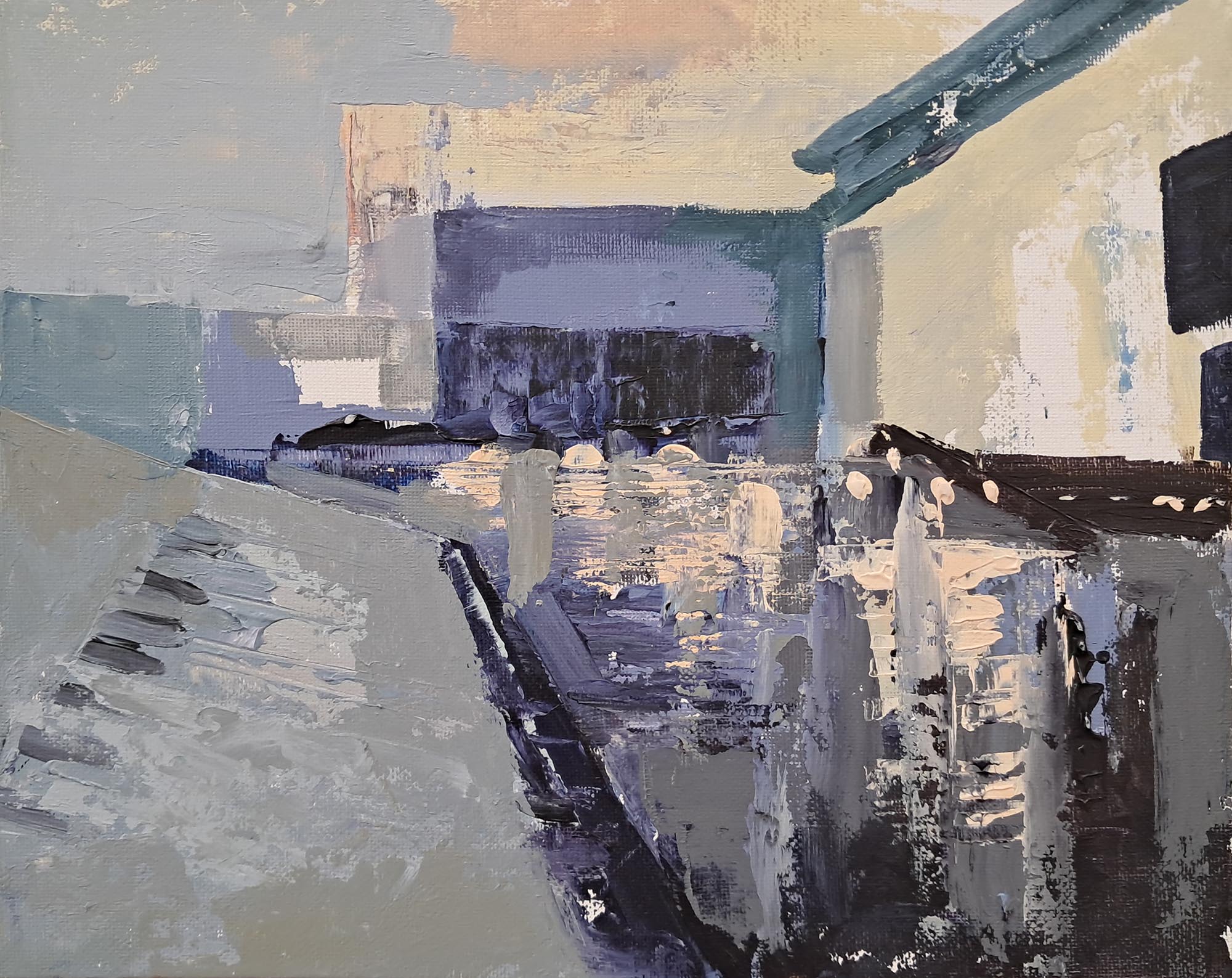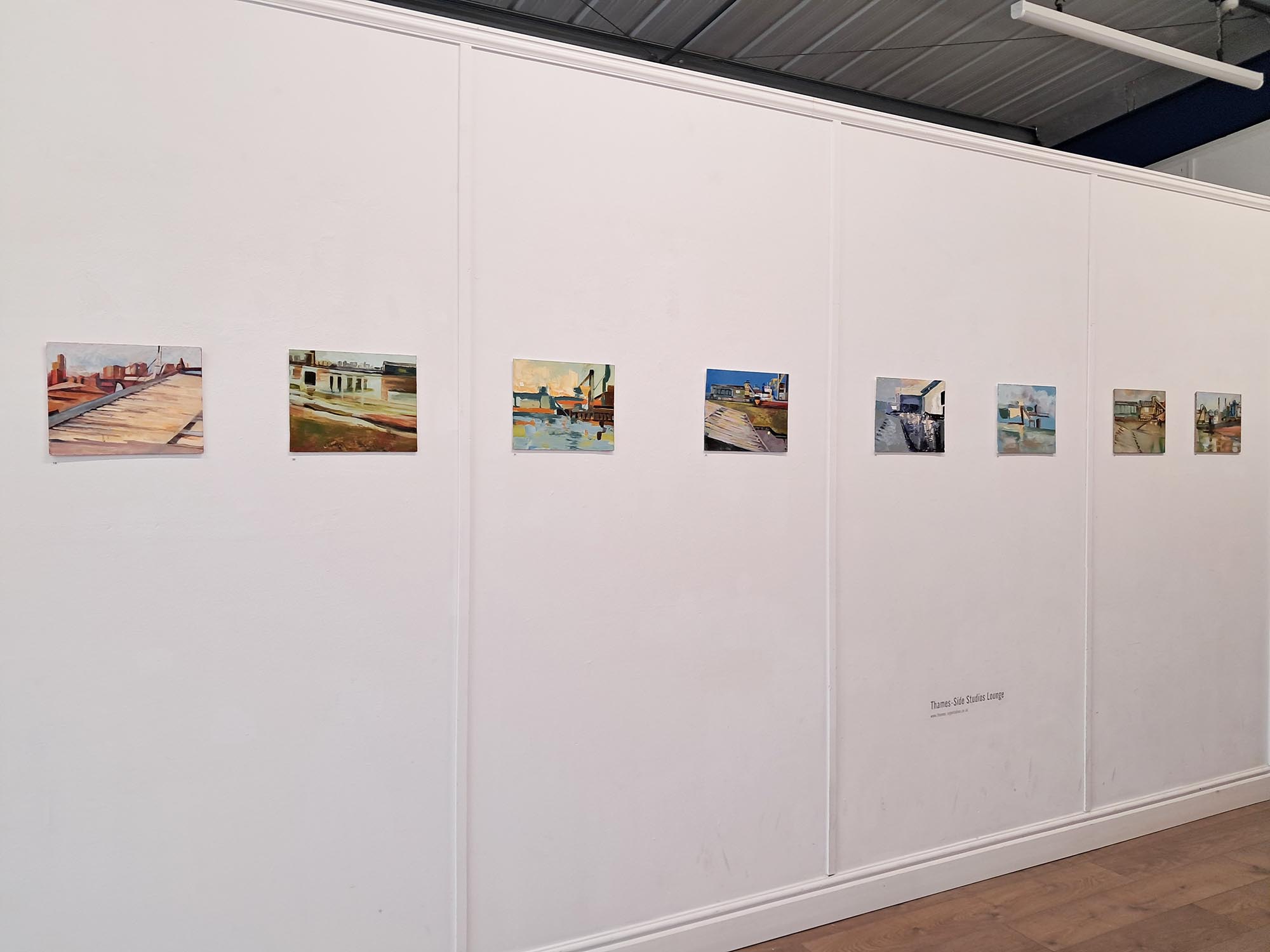 Scratch the surface…initiate an initial investigation to discover something concealed. In this exhibition, Gerri Grogan (7-206) presents work drawn over a period of time, exploring themes of the passing of time, history, nostalgia and making moves towards abstraction. Observing and researching the history of this part of industrial London, she has looked at how we attach sentiment and memory to the environments of our past and the idea that we often look back nostalgically but find the present lacking. Erosion and decay demonstrate how the passage of time impacts on the surface and material of those environments. The use of doors as art links directly to entering those different worlds and the idea of stepping into the artists’ mind. The Royal Iris ferry conveys a real sense of past glories eroding before our eyes, as do the once busy local pubs and workplaces which have been left to the ravages of time. The Tate and Lyle factory however is a still functioning reminder of the industrial heart of this part of London, and remains a constant landmark on the horizon, with moving elements reminding us of its purpose. This view has continued to inspire Gerri’s work, more recently towards a more abstract interpretation of the colour palette and ever- changing light quality reflected back from the river and the sky. About the artist: Gerri Grogan studied Fine Art at Wolverhampton University then later a MA at SOAS in Art and Architecture of South East Asia. She has been an art teacher both full and part time for over 30 years, only coming back to her own practice more fully in the last nine years. She also volunteers as a guide at Tate Modern. Her work has been very inspired by the history of her environment, whether that is urban London or the Buddhist stupas of India, but in particular the erosion and surface qualities of those environments and how they convey the passage of time has held a particular fascination. Gerri has participated in several group shows, including in Wolverhampton, Thames-Side Studios and Tate Modern staff shows, as well as a solo exhibition at the Brunel Museum café. She was also previously an artist in residence in Bangkok. For more details and information please get in touch with Gerri directly here and follow on Instagram @gerrigroganart Thames-Side Studios Lounge is located on the second floor of Unit 0 and open to all studio holders and by appointment. For non-studio holders please DM the artist to arrange an appointment.