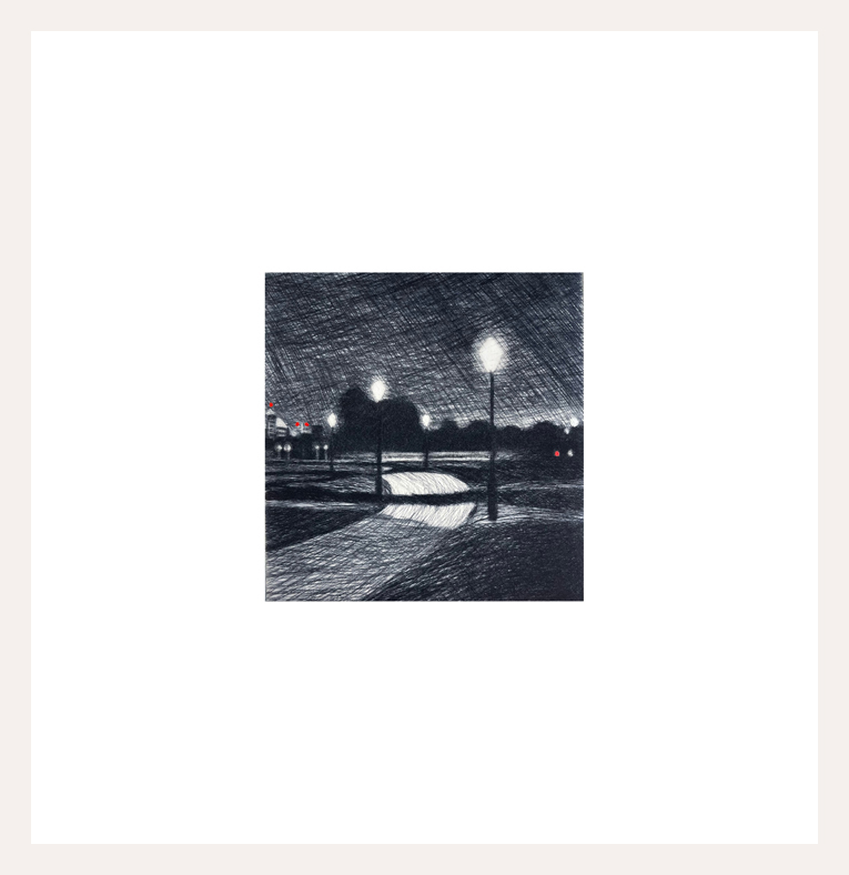 Drypoint with gouache, 27cm × 27cm, Edition of 10