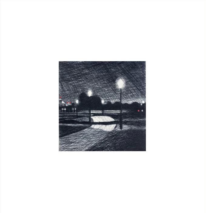 Drypoint with gouache, 20cm × 20cm, Edition of 10