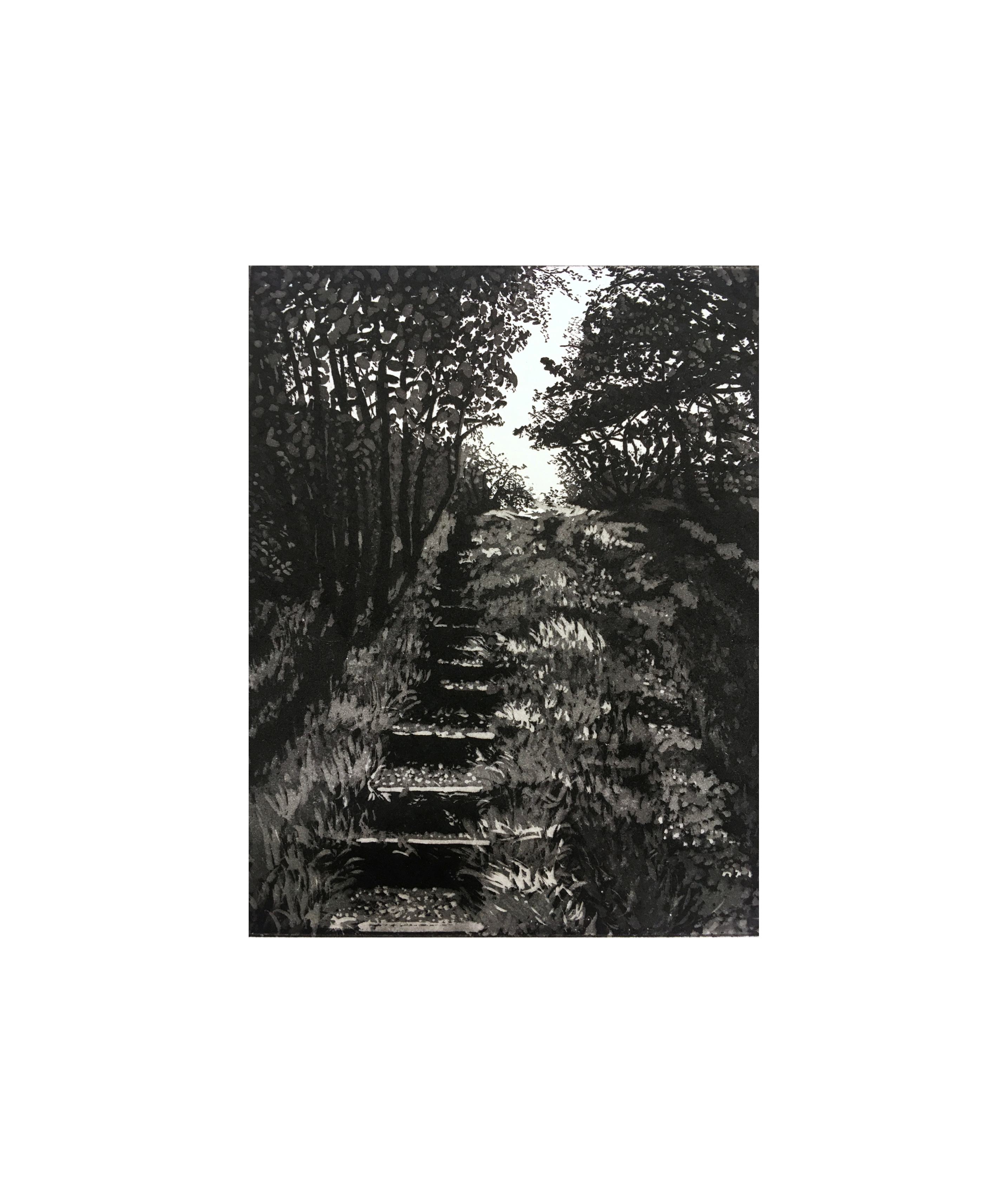 Made using a variety of techniques, including etching, drypoint and monoprint, Lucy’s prints are an emotional response to both real-world landscapes and things happening in the artist’s life. Cinematic light and shadows highlight the dreamlike feeling, a combination of observation and inner world.
